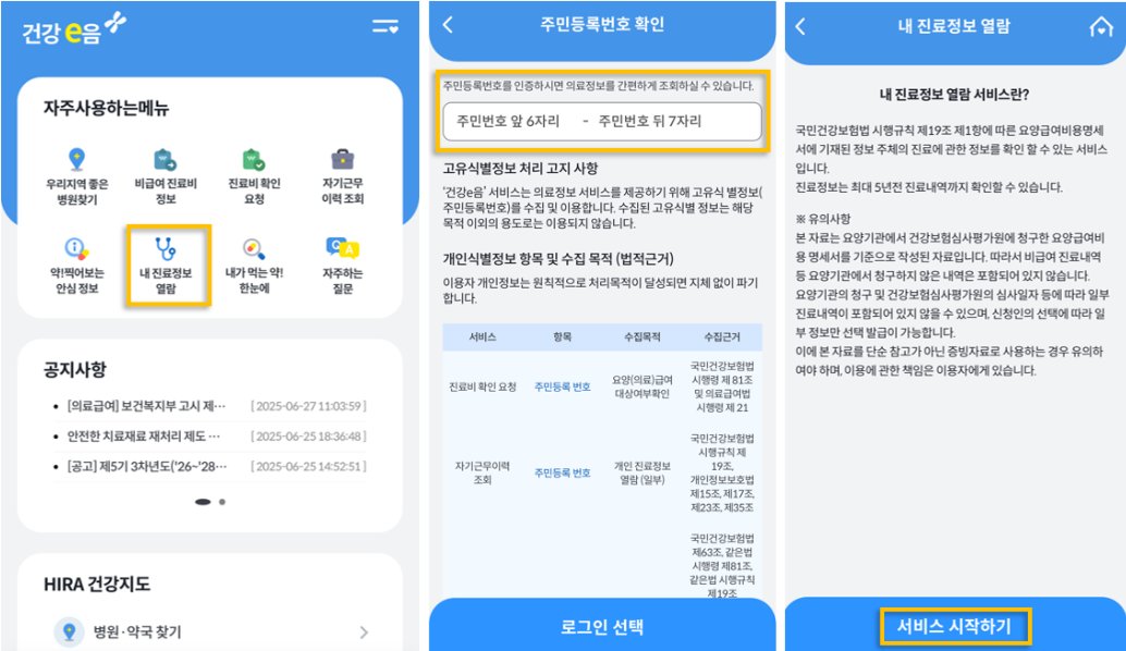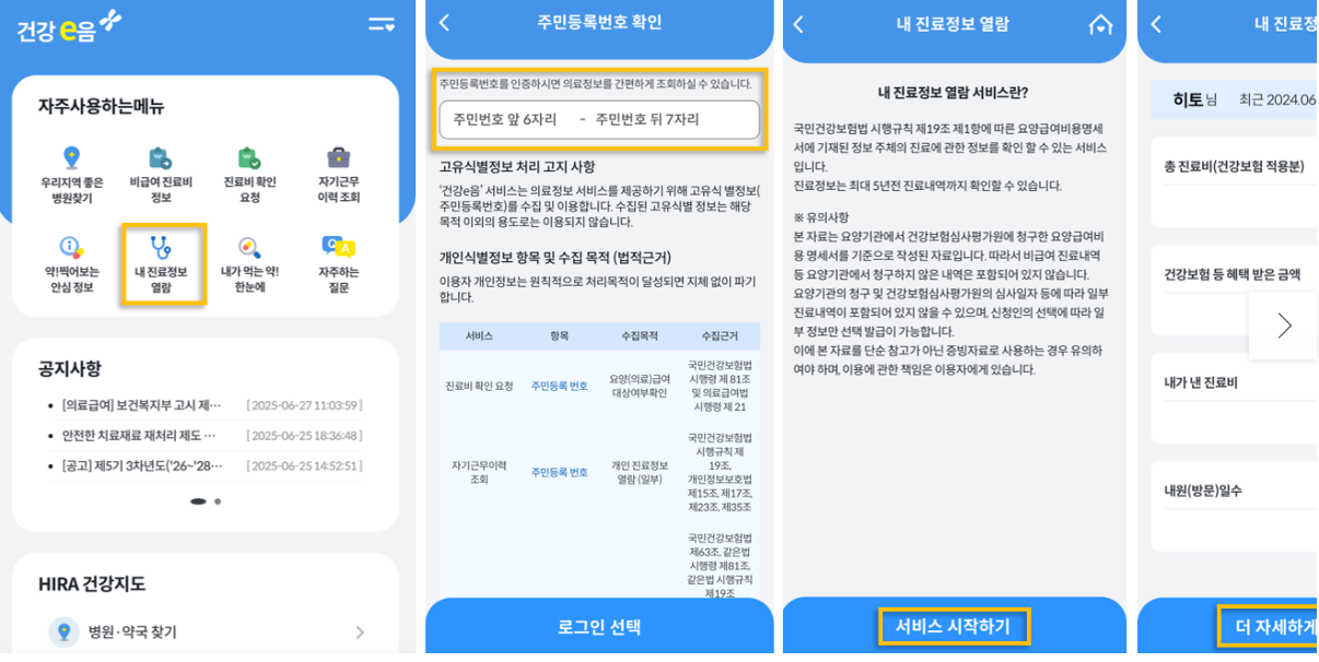 “내 진료정보 열람” 서비스는 어떻게 확인할 수 있나요?