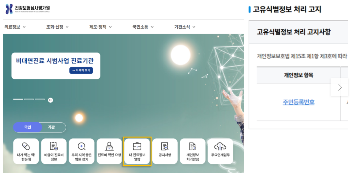 예전에 어떤 질환으로 병원을 방문했는지, 어느 병원이나 약국을 이용했는지, 또 어떤 약을 처방받았는지 궁금하셨던 적 있으신가요? 그럴 때 쉽고 빠르게 확인할 수 있는 서비스가 바로 ‘내 진료정보 열람’ 서비스입니다!